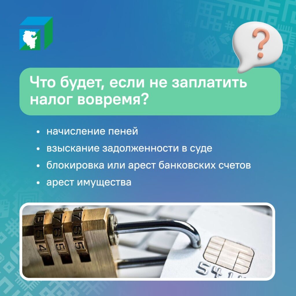 Напомним, что физические лица обязаны уплатить налоги до 1 декабря. В противном случае налогоплательщика ждет начисление пеней, блокировка банковского счета, арест имущества и взыскание задолженности через суд.
