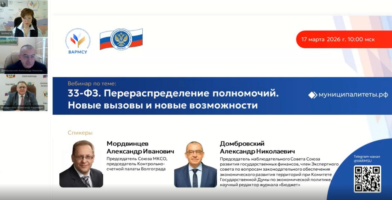 Вебинар был организован Союзом муниципальных контрольно-счетных органов и Всероссийской ассоциацией развития местного самоуправления (ВАРМСУ).